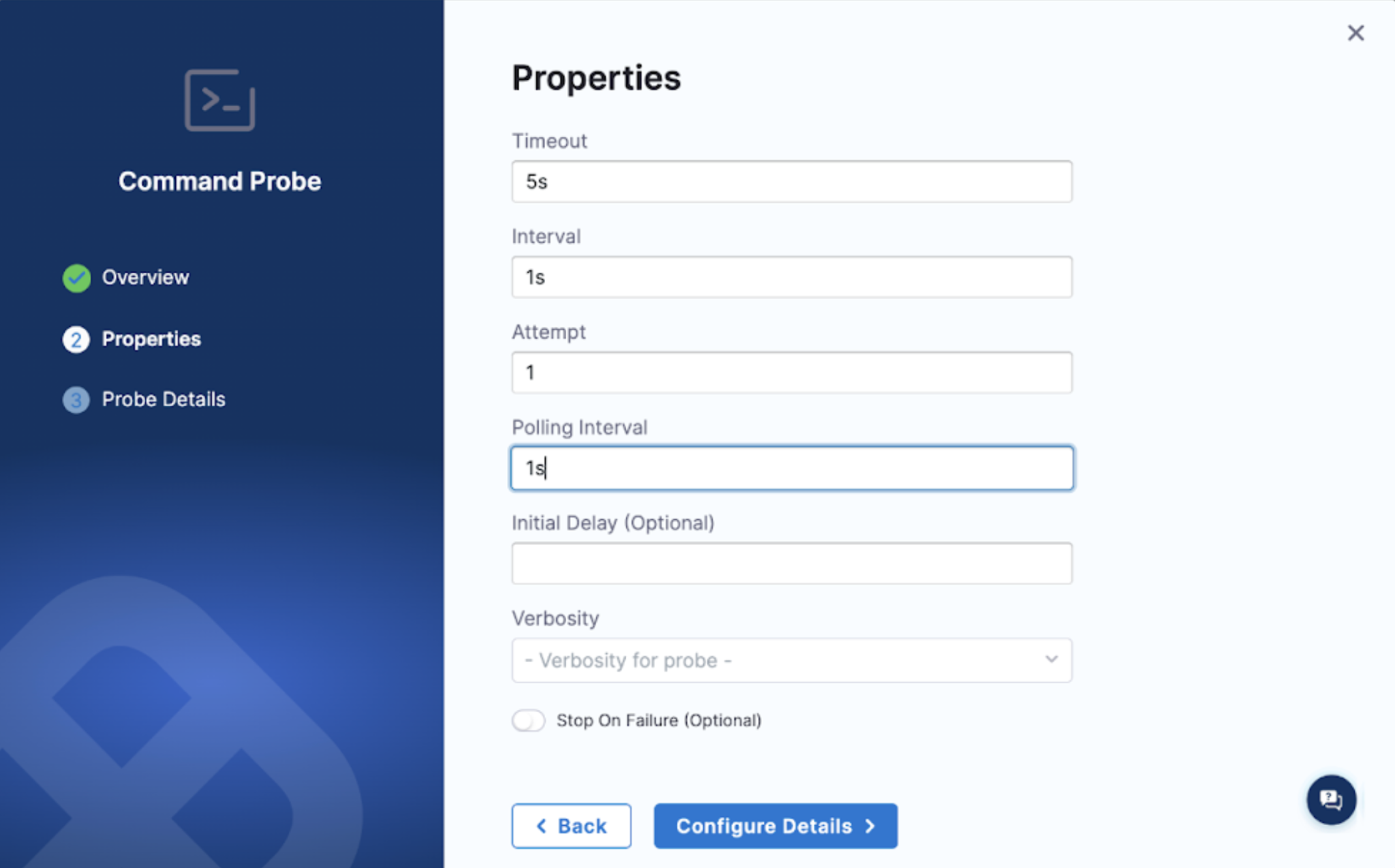 Create a new command probe, add the necessary details, and select Configure Properties.