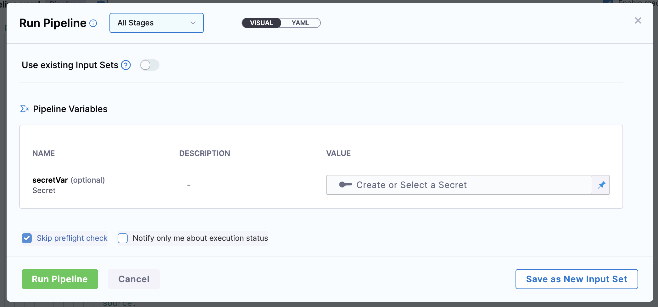 For example, to access the environment type, the path would be - input.pipeline.stages[0].stage.spec.infrastructure.environment.type