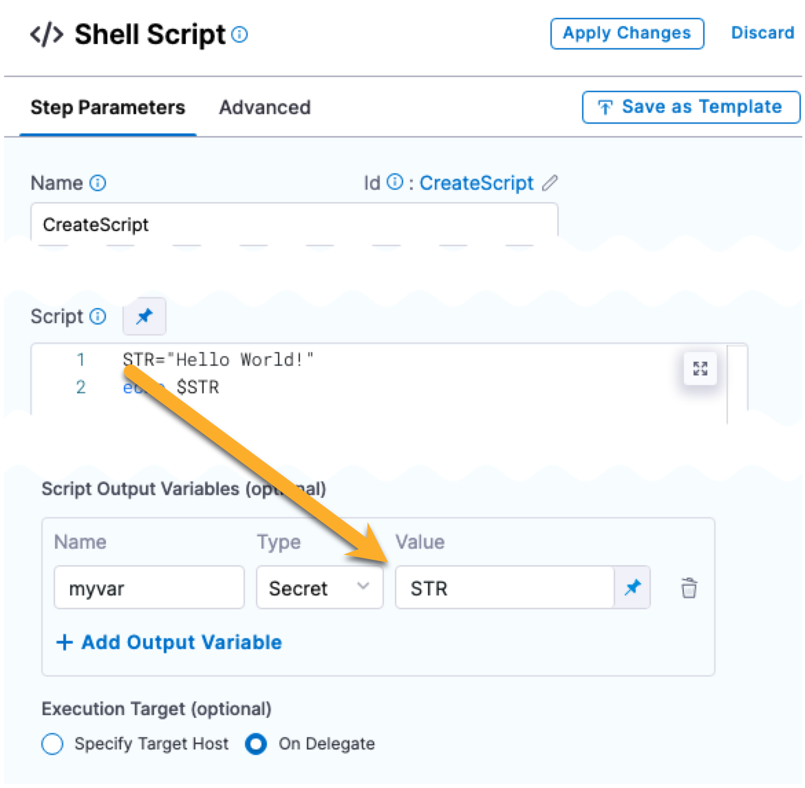 For example, you could use the Shell Script step to capture instance IDs from the deployment environment and then pass those IDs downstream to future steps or stages in the same pipeline.