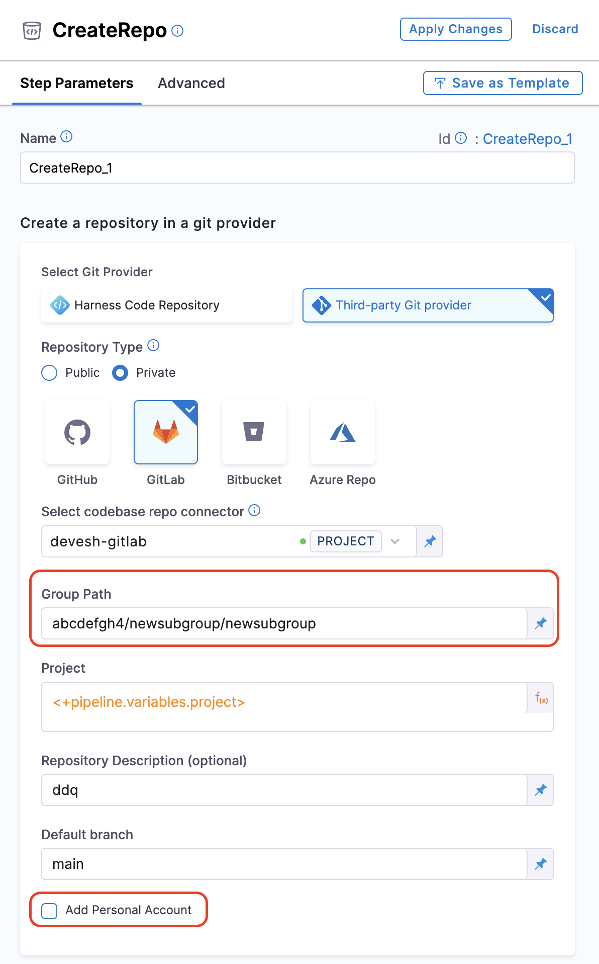 Before adding the execution steps, we need to create some pipeline variables with runtime inputs, which will be used as expression inputs in various steps during execution.
