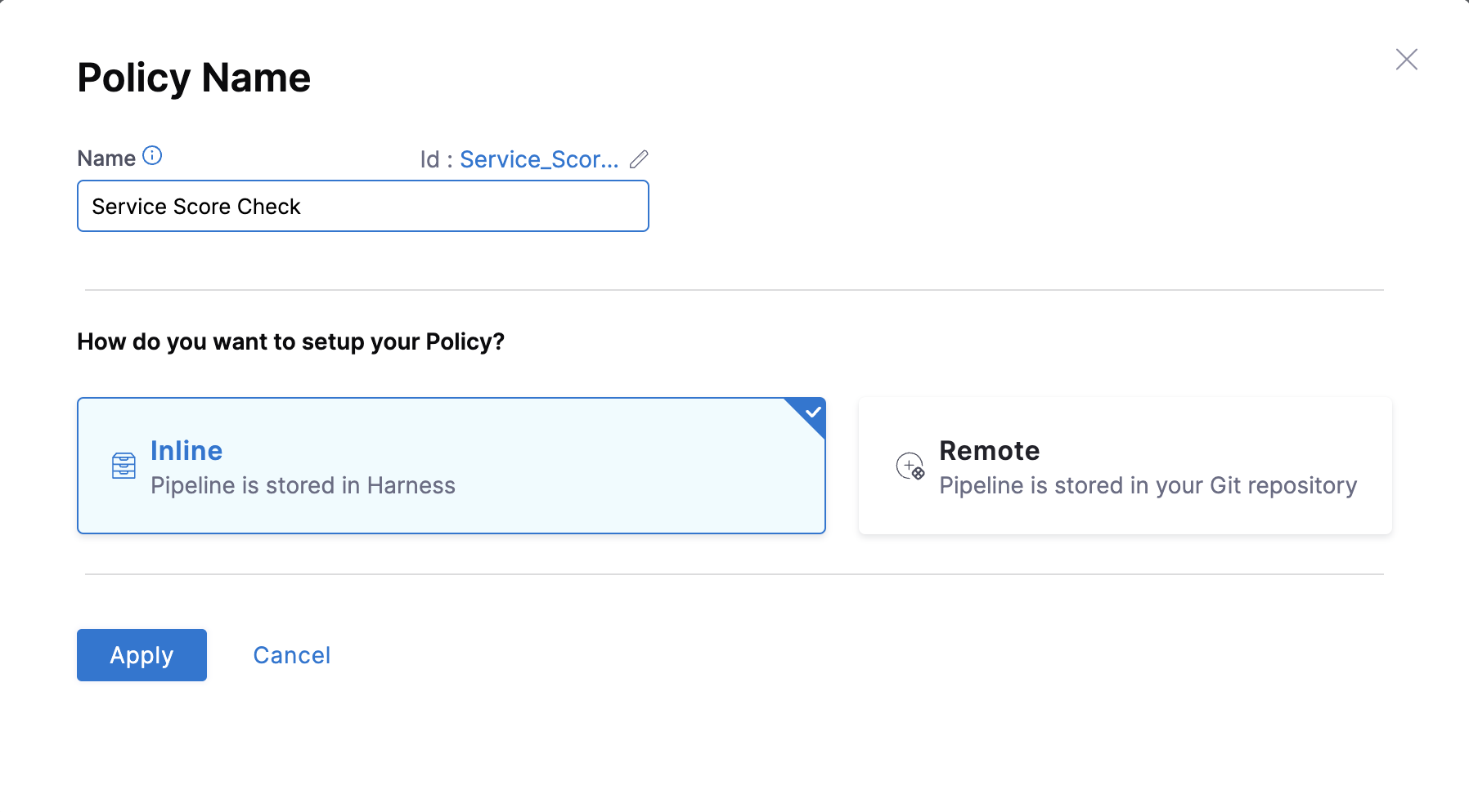 - Warning: A warning message appears: Your Score for the service used needs to be more than 50. If you save the Pipeline and deploy, Harness will throw an error.