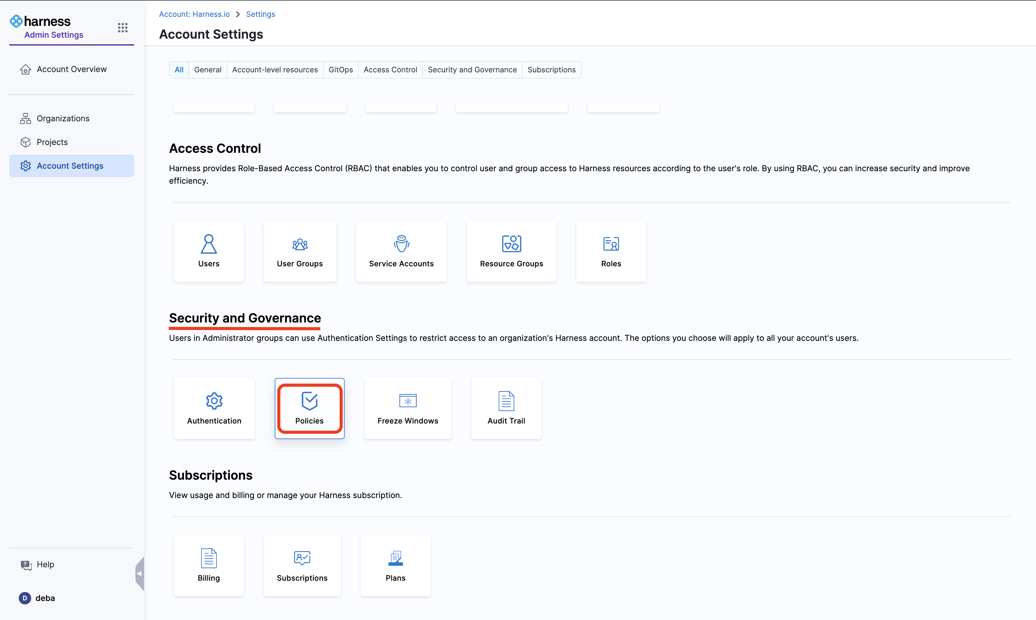 Harness Policy As Code uses Open Policy Agent (OPA) as the central service to store and enforce policies for the different entities and processes across the Harness platform. For more information about Harness Policy as Code, go to Harness Governance Overview and Harness Governance Quickstart.