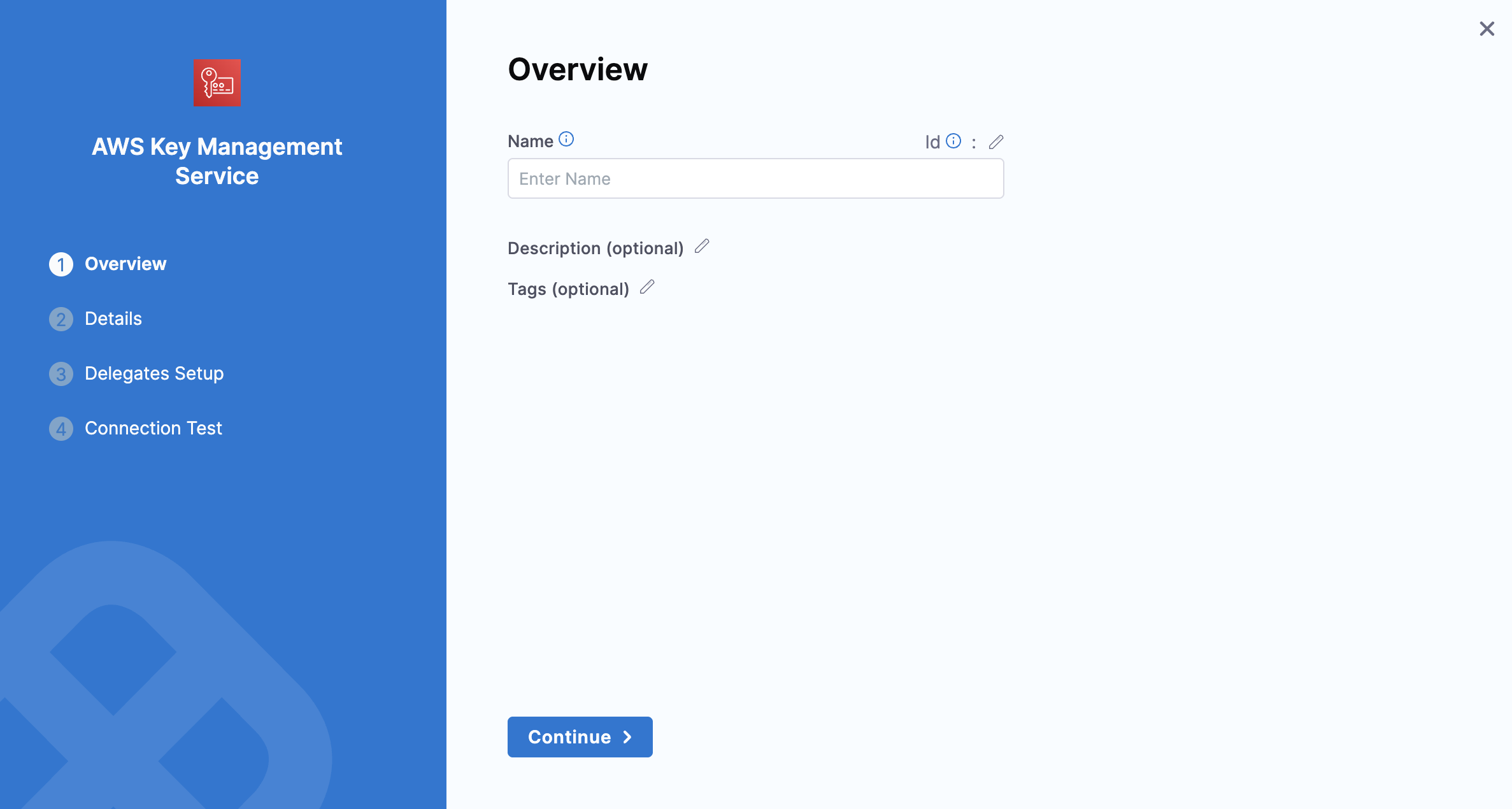Navigate to Settings → Account-level resources → Connectors and click New Connector. Then, go to Secret Managers and select AWS KMS.