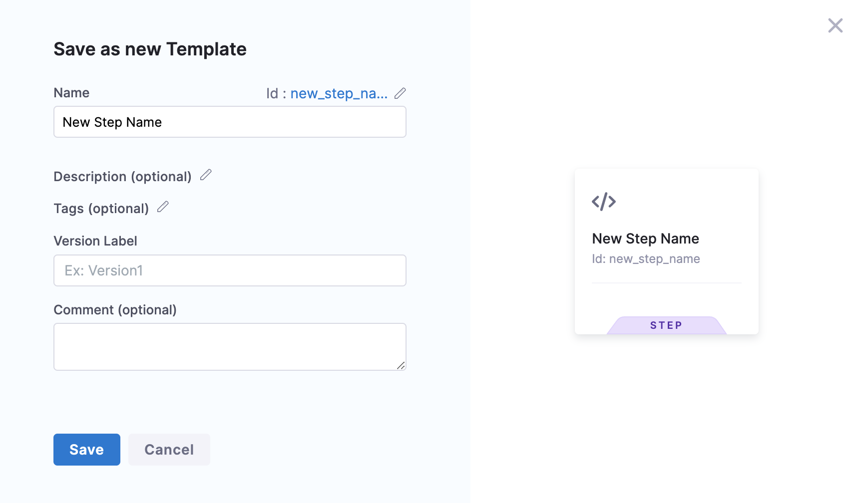 - Save as new version: Create a new version of the selected template and save with the changes you just made.