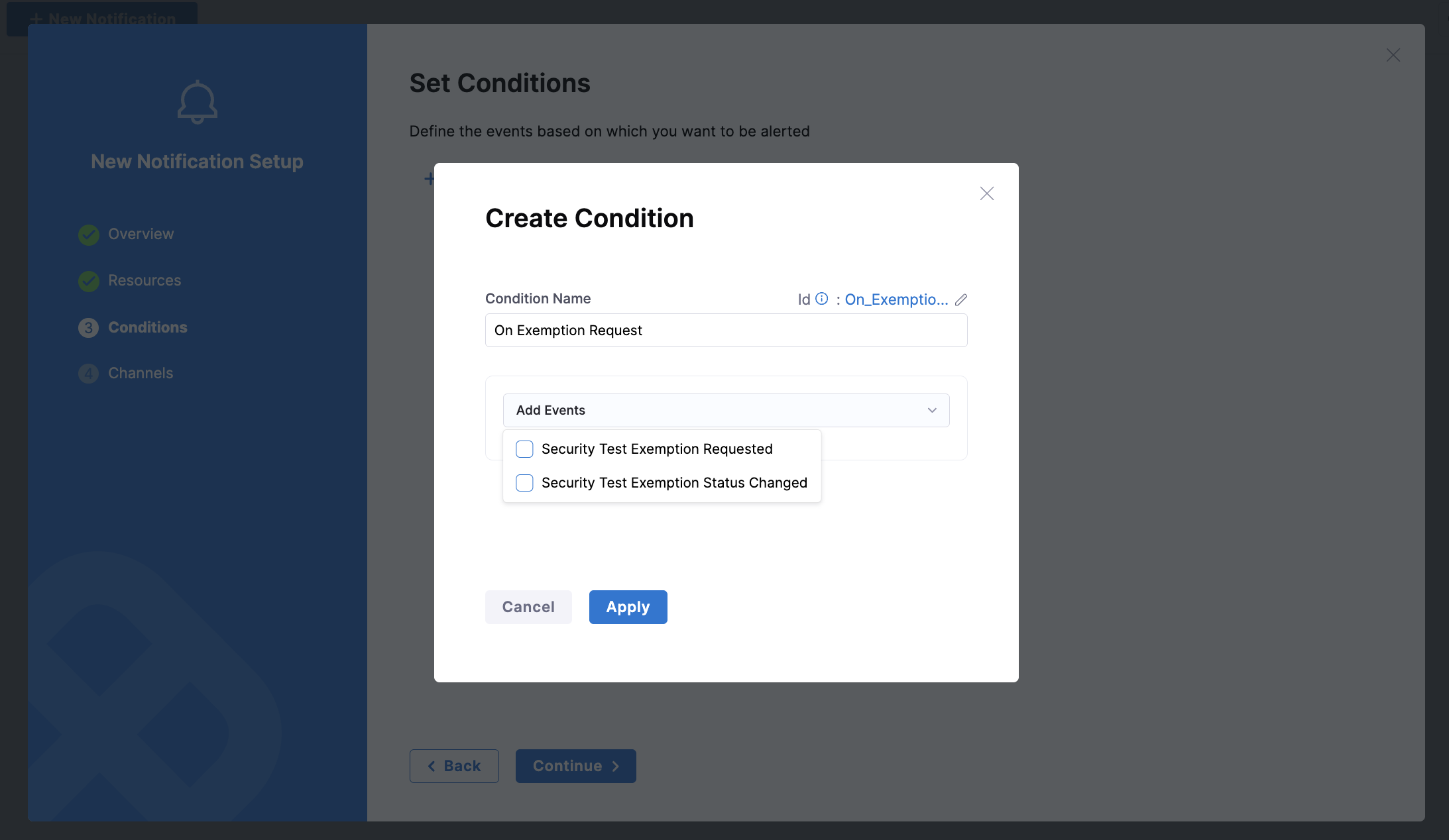 Security Test Exemption Requested: Triggers when a new exemption is requested. See the Exemption Requested section for details.Security Test Exemption Status Changed: Triggers when an exemption is approved or rejected. See the Exemption Status Changed section for details.