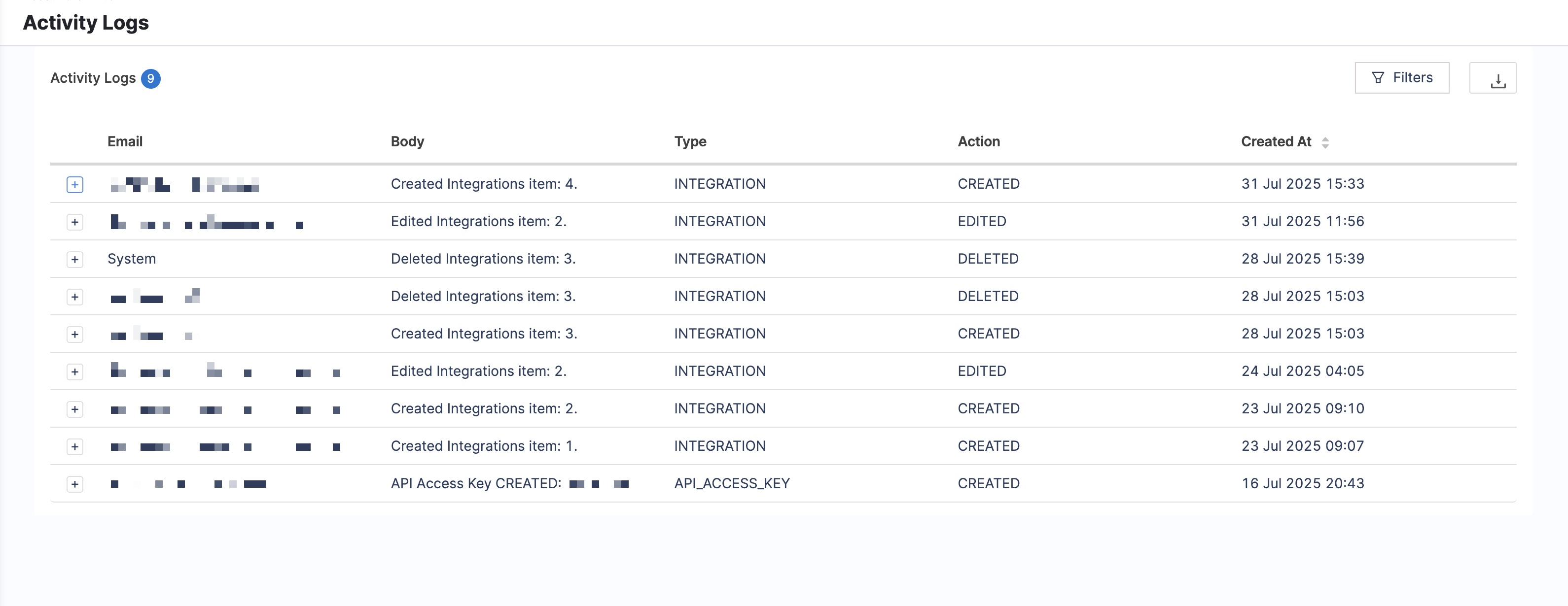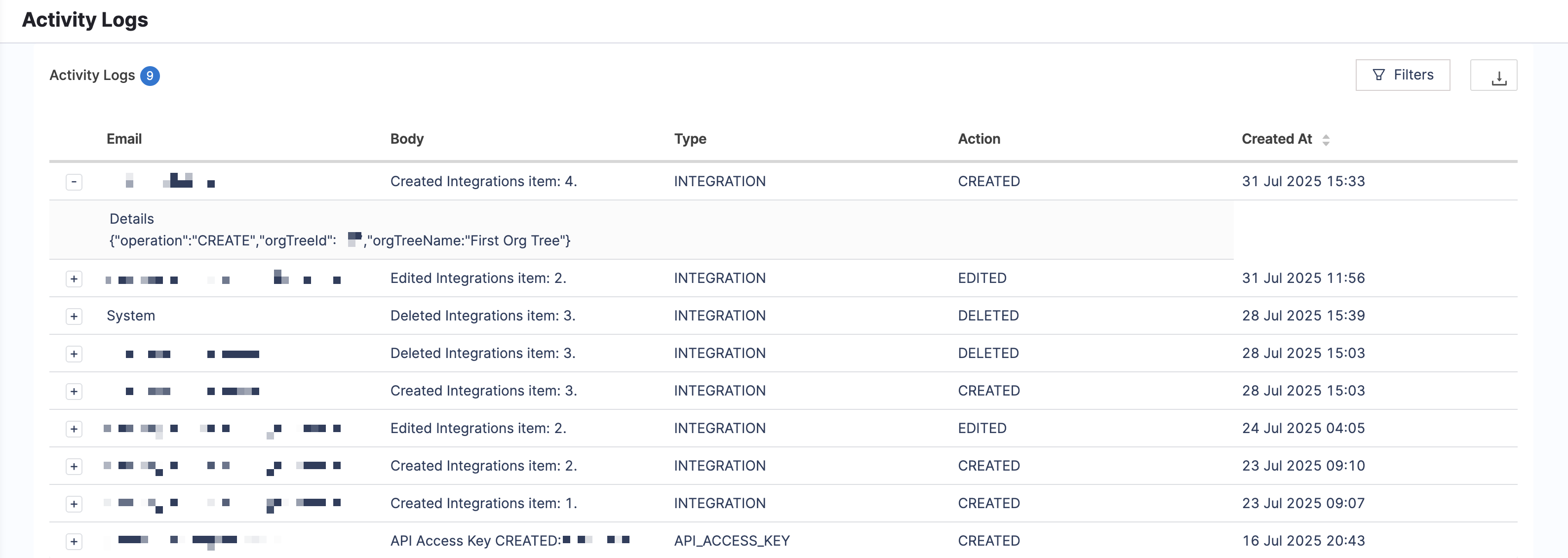 Use Activity Logs to keep your organization audit-ready and ensure that all critical changes are fully tracked. For related settings, see Manage SEI 2.0.