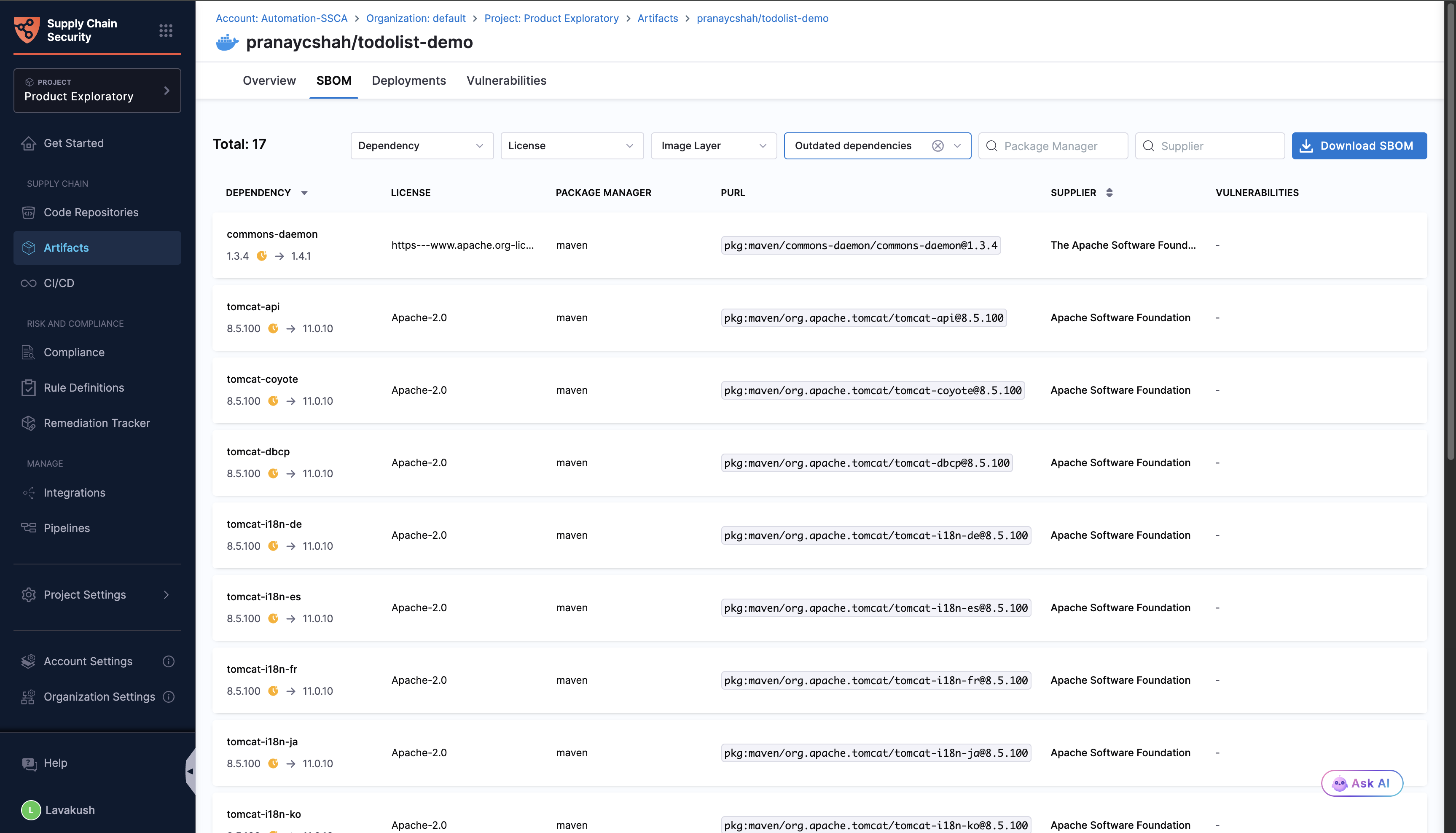We set the refresh interval for OSS component data to every 2 days. After you run the SBOM Orchestration step, the data is updated asynchronously within 5 – 10 minutes.