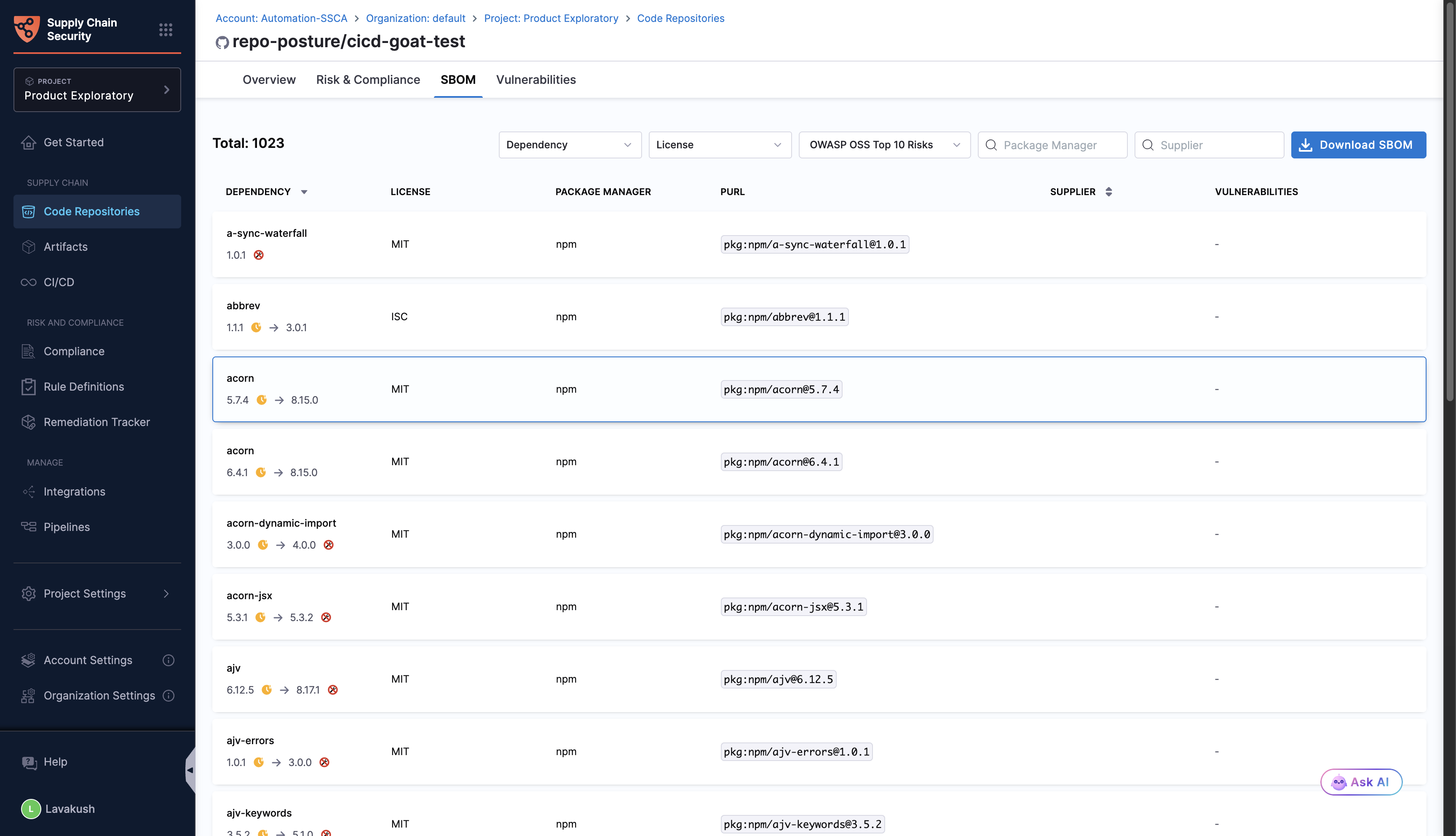 Open source software plays a critical role in the software landscape, with studies showing that over 90% of codebases contain open source components. While it accelerates development and innovation, it can also introduce security risks if not managed carefully. By assessing the components listed in your Software Bill of Materials (SBOM) against OWASP Top 10 risks helps to uncover risks such as outdated or unmaintained components, ensuring your OSS dependencies remain secure, reliable, and up to date. Running OSS risk checks plays a vital role in strengthening your software supply chain and maintaining trust in your applications.