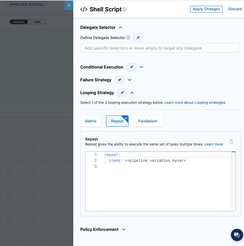 Then convert this string into a list of string again before passing it to the repeat strategy.